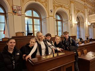 Paní průvodkyně z informačního střediska studentům osobitým způsobem přiblížila práci našich zákonodárců, vysvětlila legislativní proces a přidala několik zákulisních informací ze zasedaní sněmovny. Prostory paláců, ve kterých sídlí dolní část Parlamentu ČR, jsou důstojným místem pro takovou instituci a jejich návštěva ilustruje učivo ekonomiky a společenských věd.